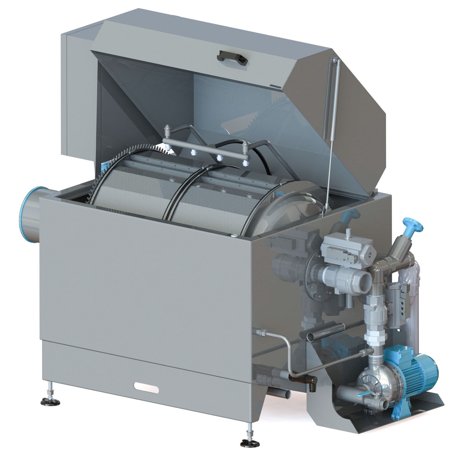 Installation eines ABZ Trommelfilters MDF im Parallelbetrieb zur Filtration der Waschflüssigkeit mit dem Ziel einer erhöhten Standzeit des Laugenbades und Verbesserung der Produktqualität.